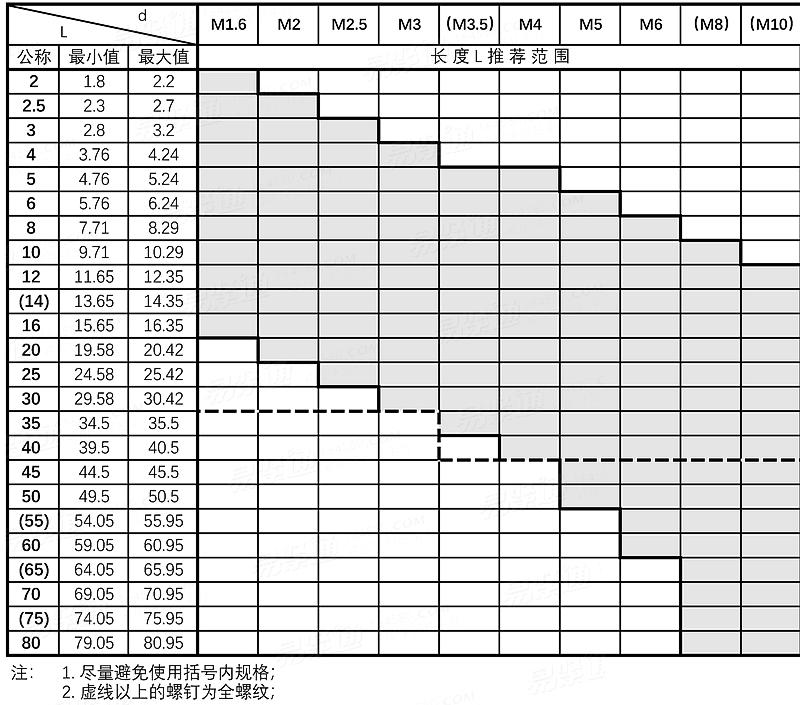 米制開槽盤頭螺釘Table10 Metric Slotted Pan Head Screws |